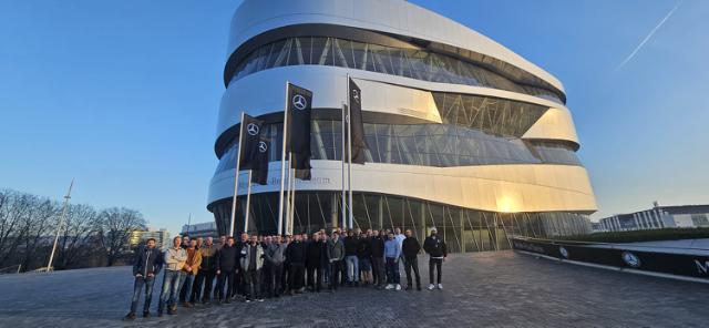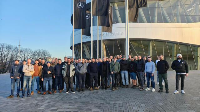 Hlavní odborný program odstartoval v úterý v sídle společnosti ISO-CHEMIE. Školení bylo koncipováno jako kombinace teorie, praktických ukázek a detailní prohlídky výroby. Účastníci měli možnost vidět celý proces výroby expanzních těsnicích pásek – od vstupních materiálů až po finální produkty – a zároveň si vyzkoušet správné postupy přímo v praxi. Odborný program doplnila také návštěva muzea Mercedes-Benz ve Stuttgartu, která byla pro mnohé silným zážitkem.