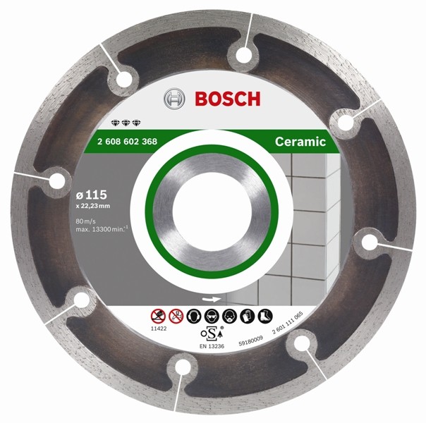 Diamantový řezný kotouč na kameninu, keramiku, keramiku glazovanou, mramor a jiné stavební materiály. Výška segmentu 10mm. Velmi čistý řez, určený na přesné řezání hran bez vytrhávání.