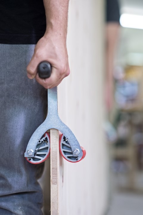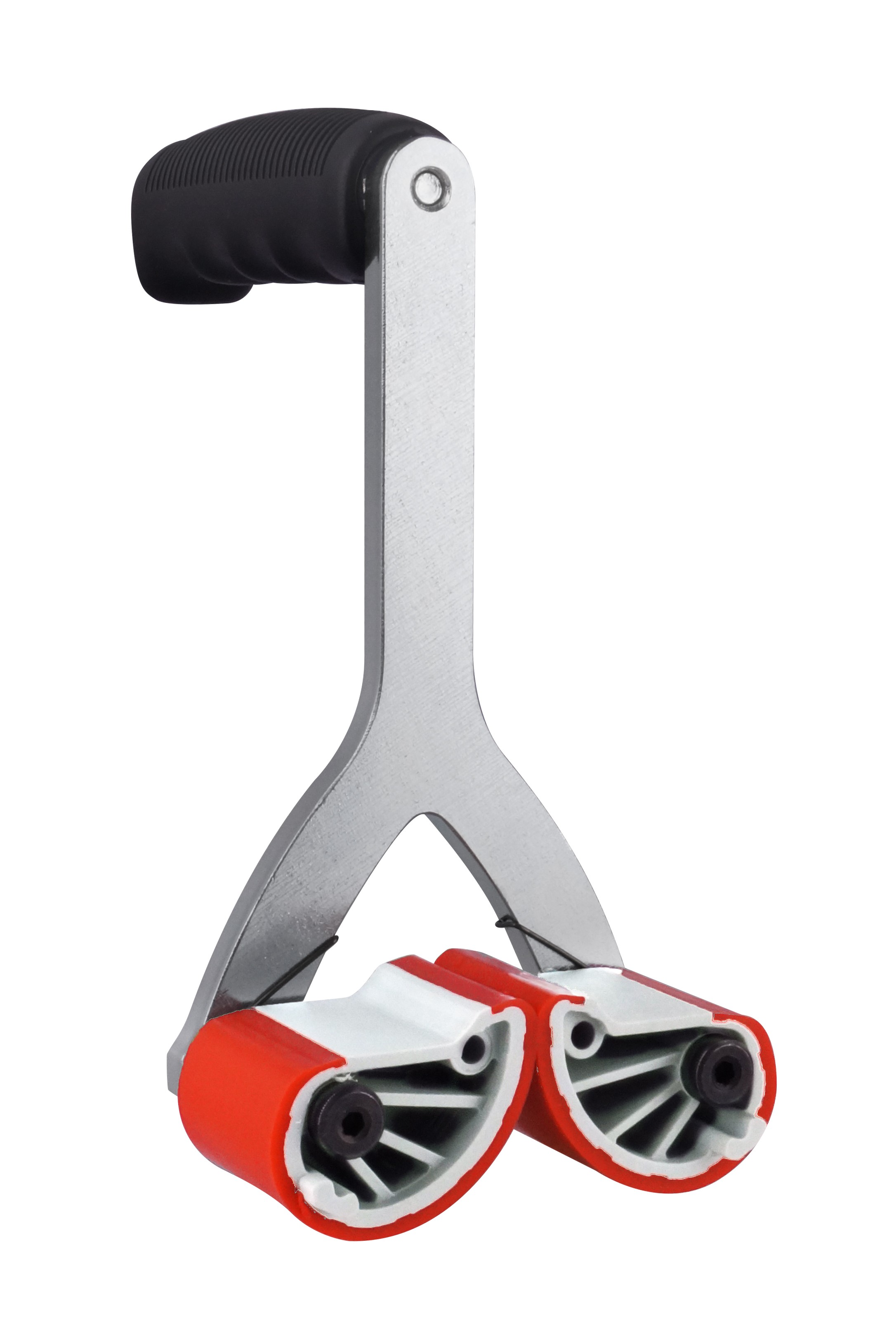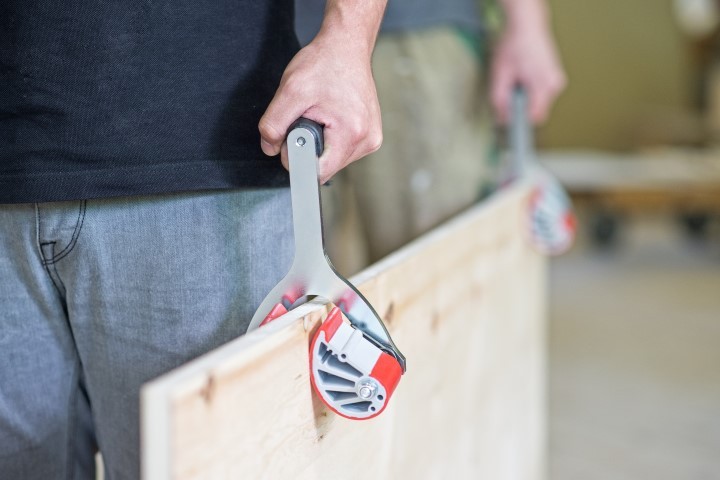 - výstředníky jsou opatřeny speciální protiskluzovou gumou, která zajišťuje naprosto bezpečné upnutí desek možnost uchopení materiálu shora nebo zboku