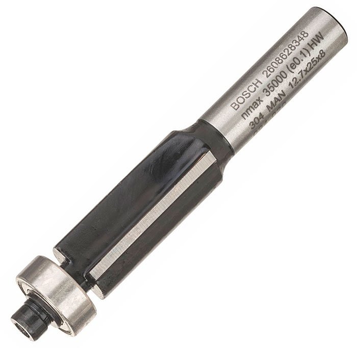 Zarovnávací frézy s vodícím ložiskem, dvounožové, z tvrdého kovu na zarovnávání a fazetování vrstvených deskových materiálů, dřevěných trámů a hranových lišt při výrobě nábytku a regálů. Vodící ložisko na jednoduché vedení přímo na obrobku bez šablony. Hodí se na masivní dřevo a abrazivní deskové materiály.