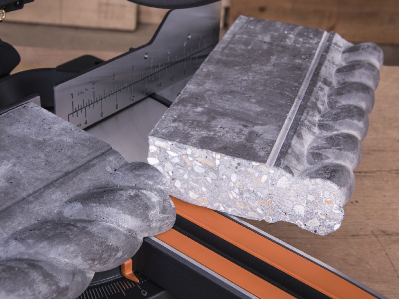 - Řežte soklové lišty, římsy, desky, parkety a další až do 300mm x 80mm.