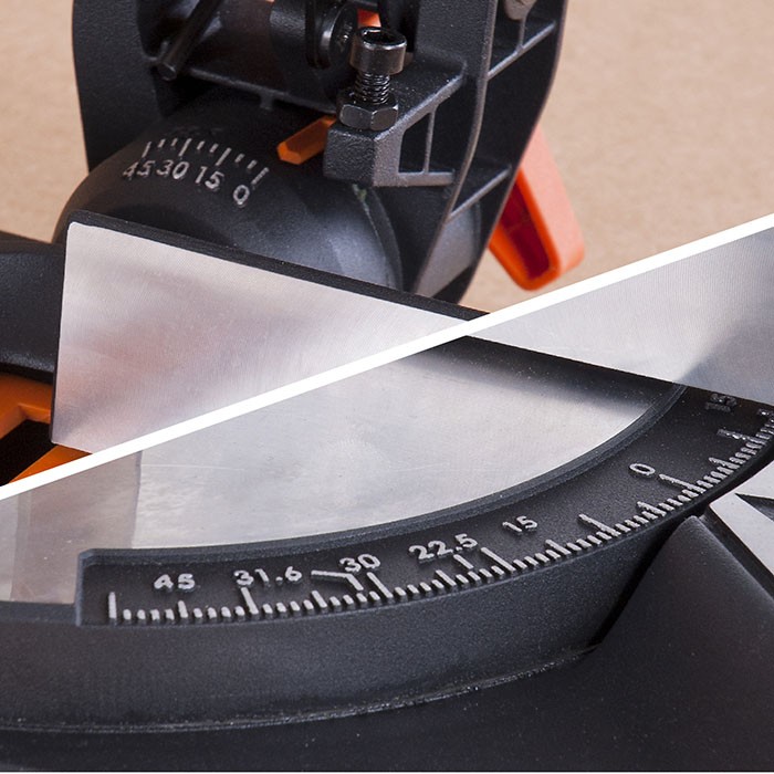 - Vysokovýkonný 1200W motor, jasné a přesné nastavení úhlu řezání á 0°-45° zkosení