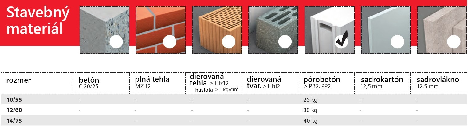 • rozpínání hmoždinky zabezpečuje vysokou pevnost uchycení