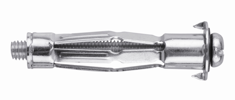 Kovová hmoždinka do dutých materiálů a různých příček jako např. sádrokarton, dřevotříska, cementové a dřevěné desky, OSB, MDF, atd. MHD