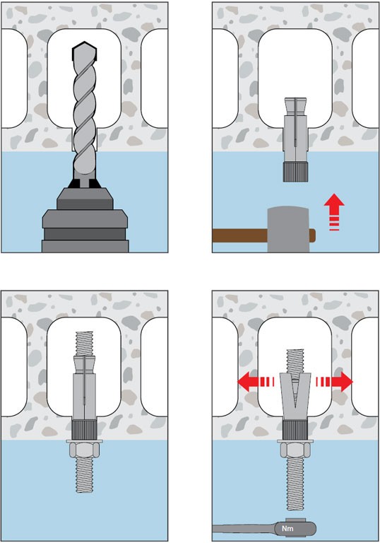 • dotahováním šroubu se expanzní část roztáhne v dutině