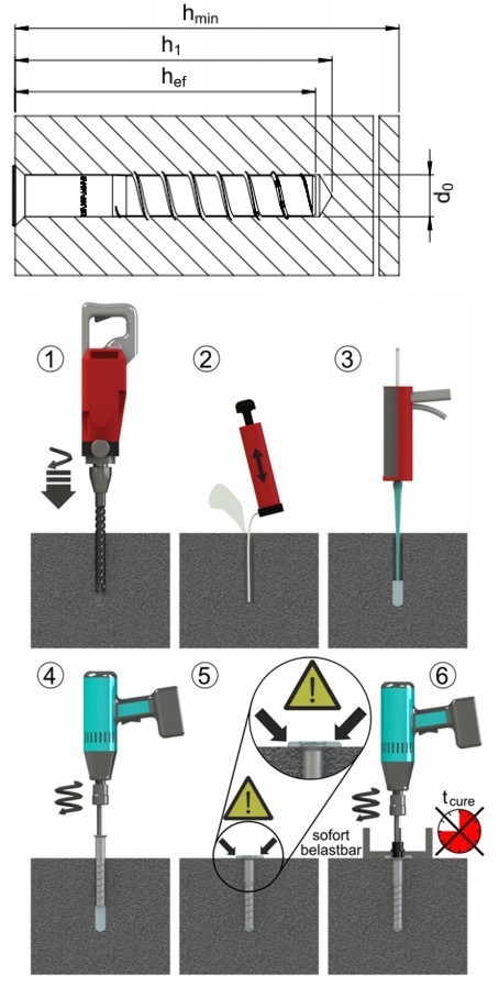 • přenos vysokého zatížení vytvořený hlubokým závitem v podkladě a chemickém pojivu