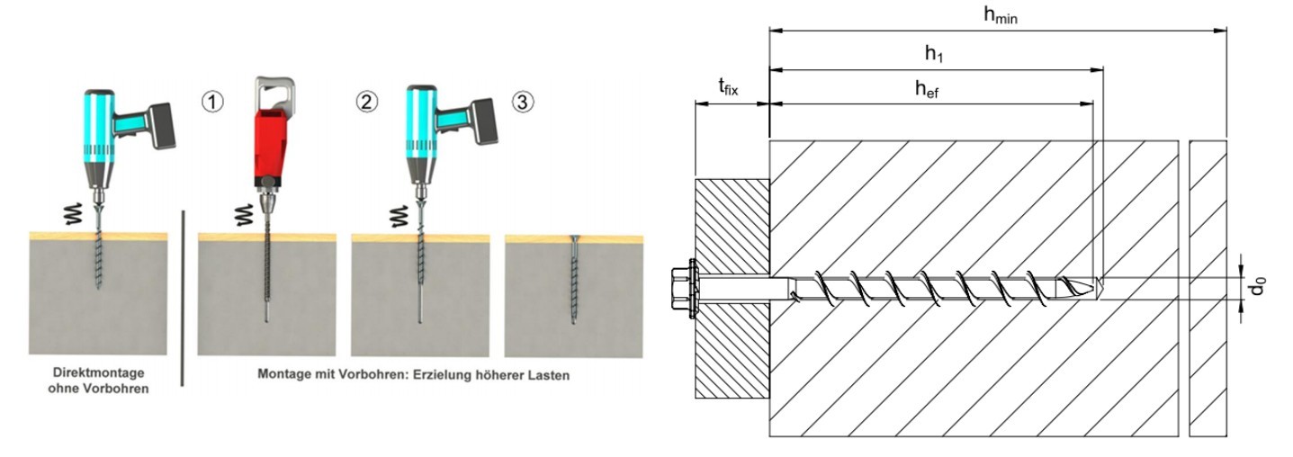 • přenos vysokého zatížení přes hluboký závit vytvořený v podkladě
