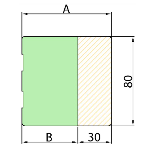 - PRO 80+ šířka (A) 80 mm, šířka (B) 50 mm