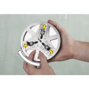 Tato nastavitelná děrovací pila vám umožní vyvrtat všechny otvory od 45-90 (5977) a 45-130 mm (5978). Na mnoho průměrů potřebujete pouze jeden výrobek! Tři kotouče se třemi zuby lehce přeřezávají sádrokartonové desky a desky z měkkého dřeva a zajišťují jemné a čisté řezy díky speciálnímu, rovně nastavenému ozubení. Velikost se nastavuje ve třech jednoduchých krocích: uvolnění, synchronní nastavení a upevnění. Integrovaná milimetrová stupnice, jako i další stupnice pro standardní montážní průměry vám pomohou najít správný poloměr na první pohled. Velký vrtací kotouč chrání pracovní oblast. Dostatečně velké otvory spolehlivě odvádějí prach při otáčení a zabraňují jeho uváznutí v těle vrtačky. Tím je zabezpečena funkce polohovacího mechanismu dlouhodobě i přes vznik velkého množství prachu.