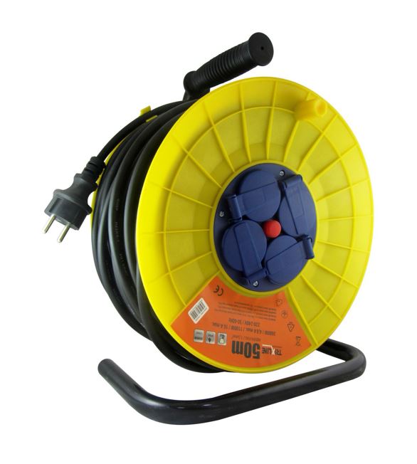 Prodlužovací pogumovaný buben s uzavíratelnými zásuvkami (IP44) v 25m a 50m délce.