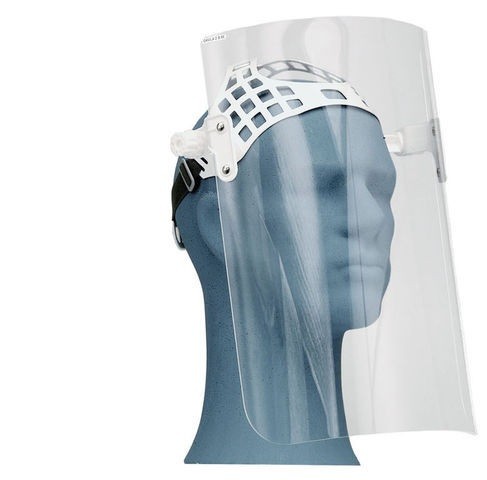 - Ochranný štít z čirého PMMA je typem štítu s hlavovým nosičem