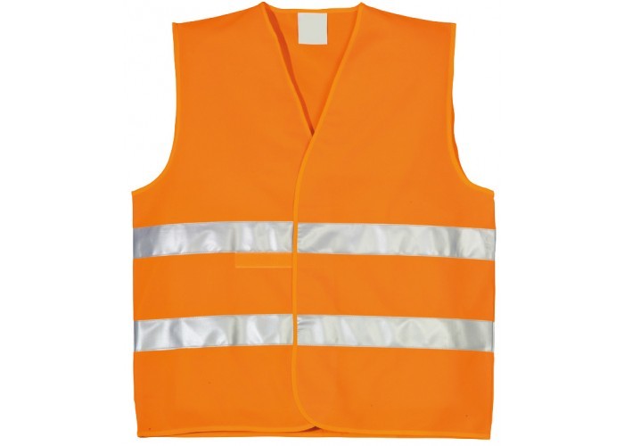 Signální vesta s reflexními pásy v oranžové a zelené barvě.