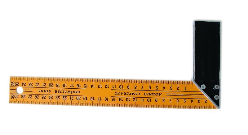 Kovový 90° úhelník ve žluté barvě a v různých variantách délky.