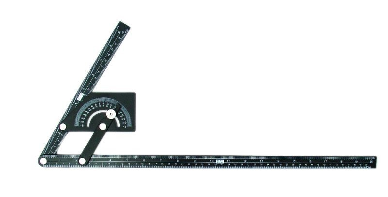 Úhloměr se záběrem 180° s rozměry 230x500mm.