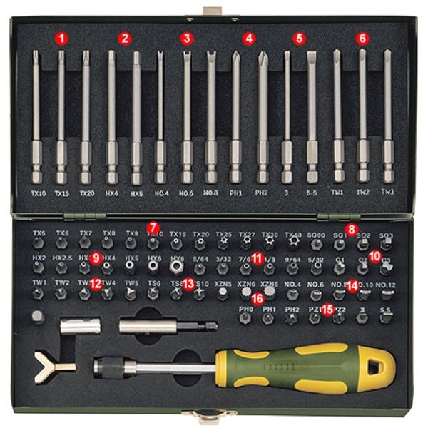 - bity TORX: 5, 6, 7, 8, 9, 10, 15, 20, 25, 27, 30, 40 mm